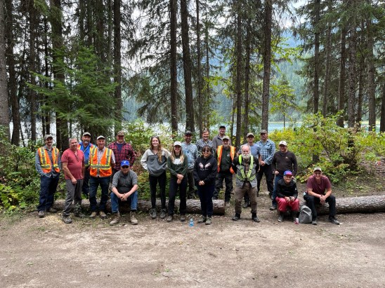 In the fall of 2023, the LNTCFS hosted a diverse group of community members and forestry professionals including the LNTCFS board of directors and woodlands staff, the Forest Enhancement Society of BC, Simpcw First Nation, Tolko, and the Ministry of Forests. This tour focused on some of the operational activities within the Community Forest including its wildfire risk reduction fuel treatments and a research trial looking into the responses of stand thinning on tree growth rate and form. The group had lunch at the South Barriere Lake Rec Site.